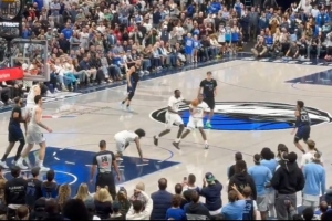 莫兰特用手指指克莱面部 被克莱一巴掌打开 双方险些爆发冲突