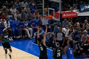 杨瀚森3分1助1帽1劝架 亚历山大28分雷霆半场领先开拓者21分